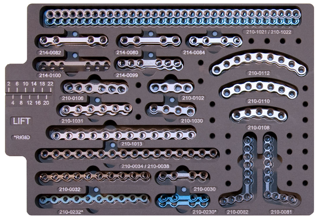 It?is composed of metal plates and metal screw, uses Ti6A14V ELI titanium alloy materials that meets the standard of ASTM F136. Product?surface is without color. Non?sterilization condition.